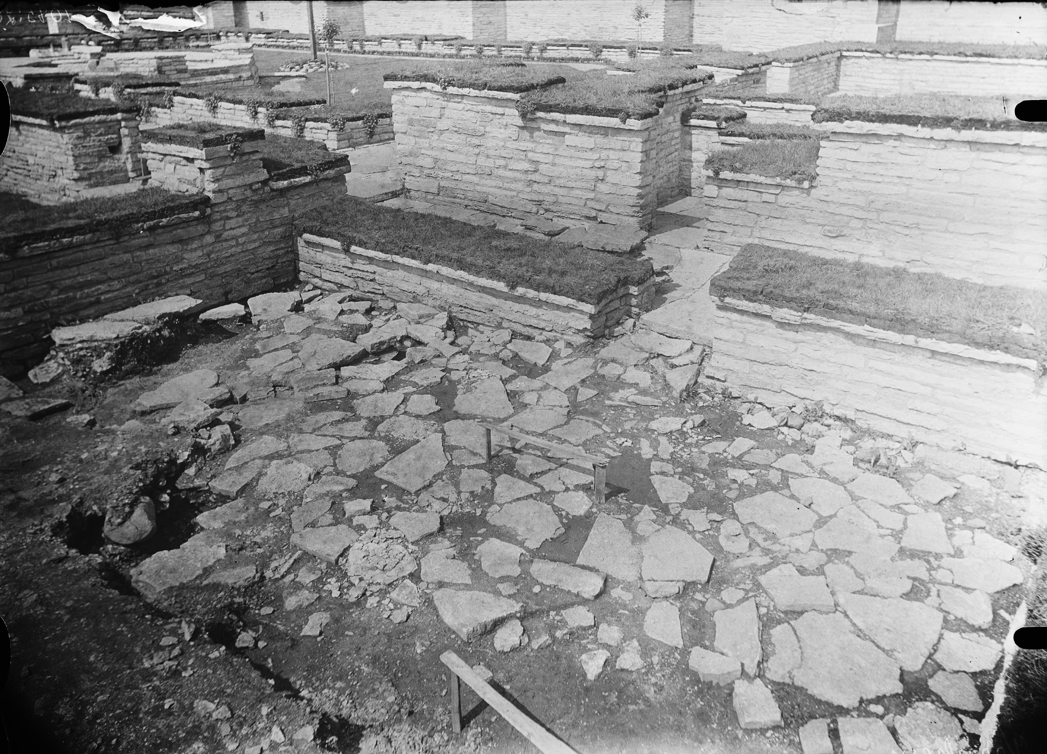 Östra längans sydligaste rum, dess nordligaste del. Andra golvet uppifrån golv II. Längst till vänster två golvhällar kvar av översta golvet (golv III). Från sydöst.