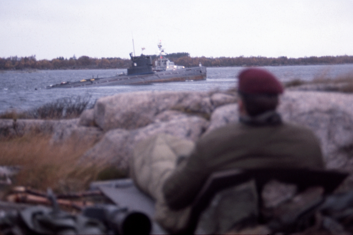 Bilden föreställer bevakningen av olyckplatsen av svenska kustartillerister och fallskärmsjägare.