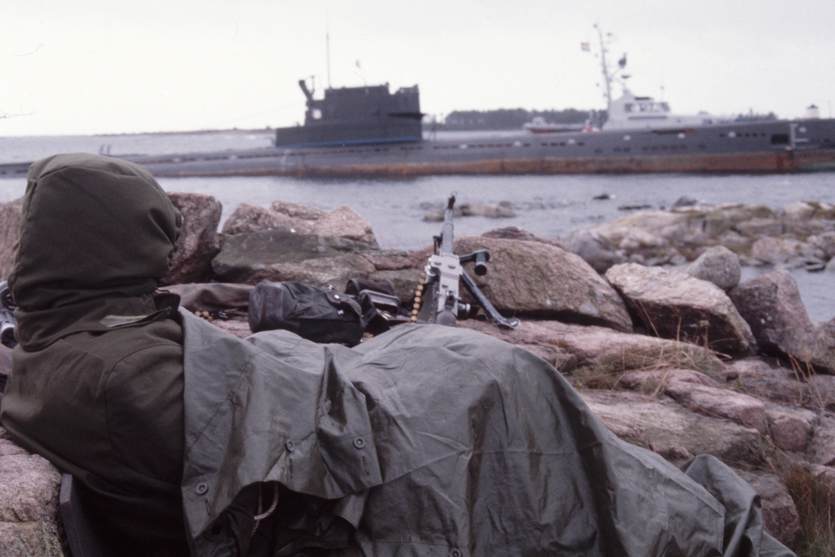Bilden föreställer bevakningen av olyckplatsen av svenska kustartillerister och fallskärmsjägare.