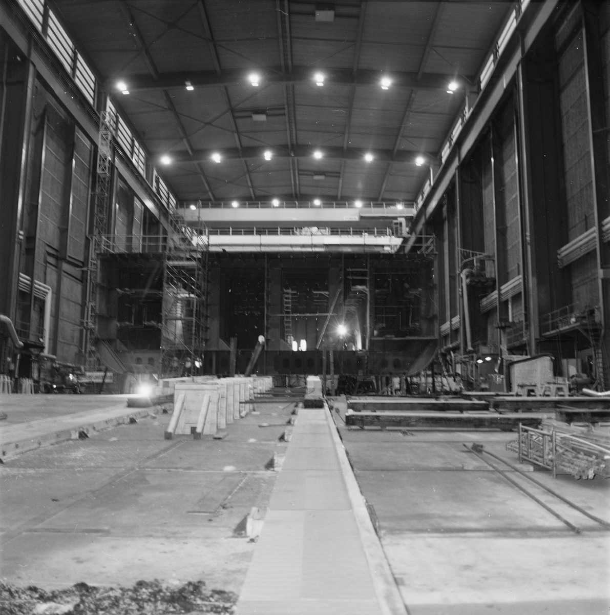Ro/ro fartyget på bädden i skrovhallen.