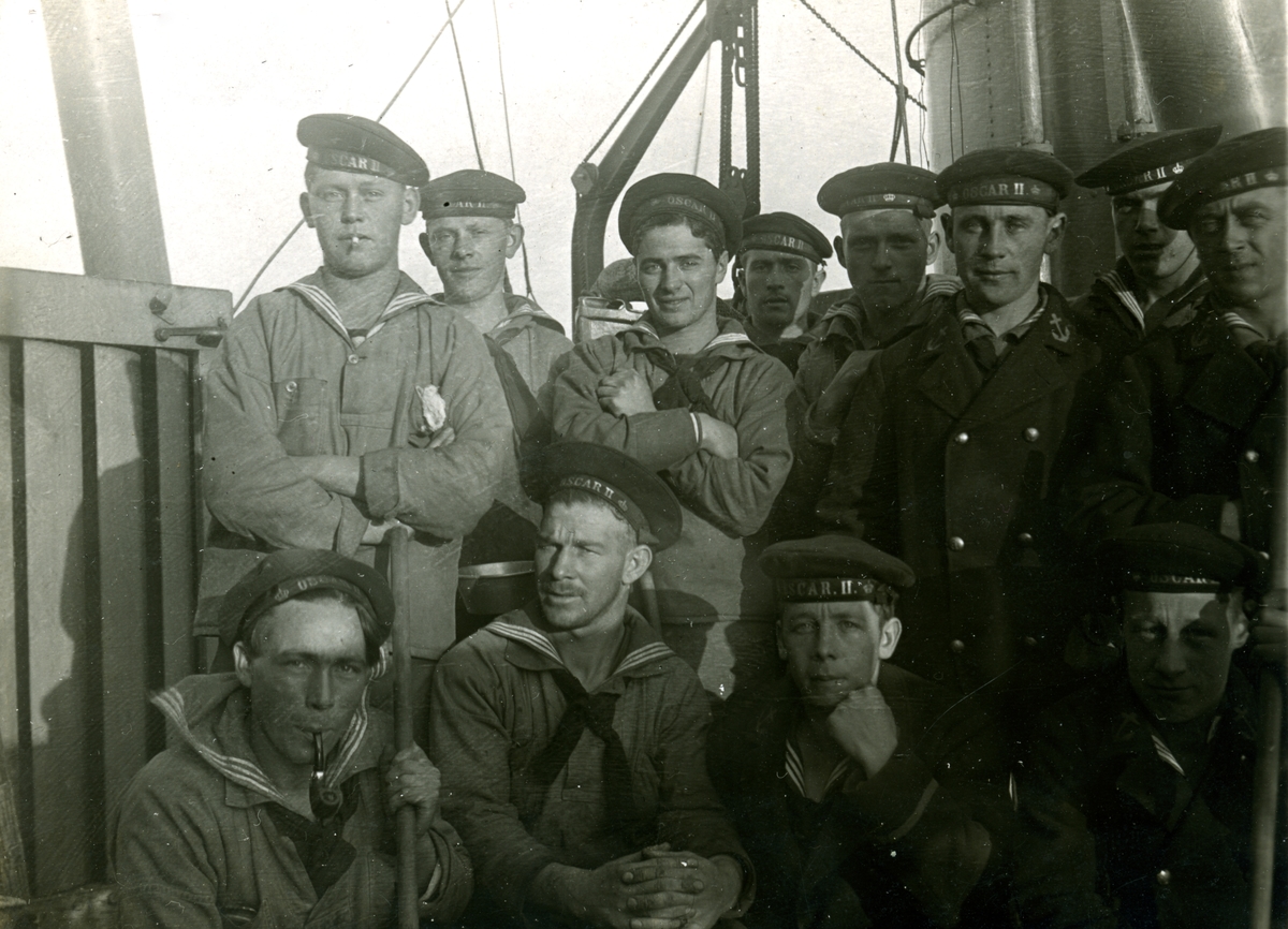 Ett gäng sjömän ombord på fartyget Oscar II.
