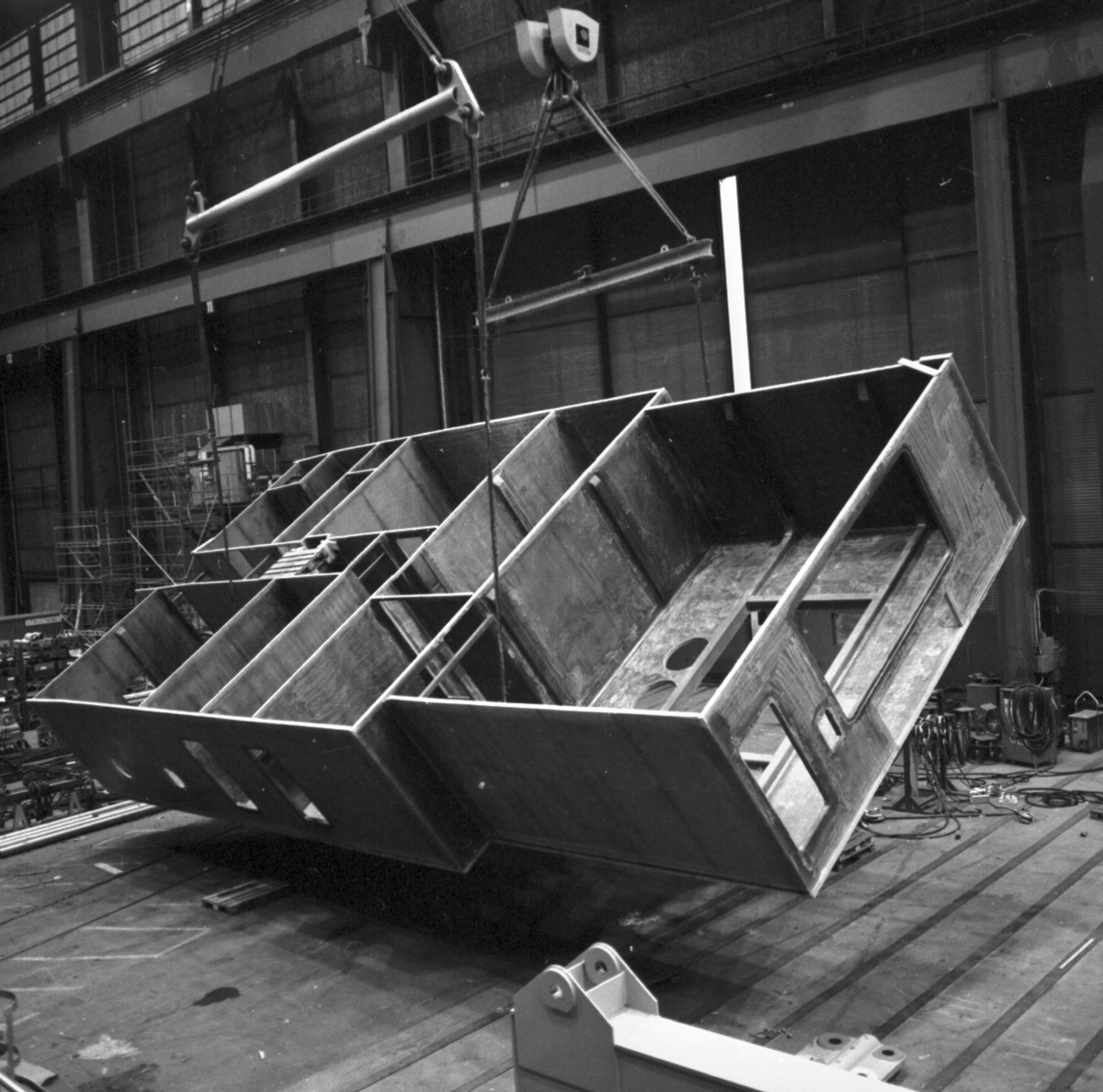 Lyft av däckshus till nybygge 418, Kullen\\\\anm. neg ingår i en serie om 14 där endast det första\\V 103098 scannats/gp