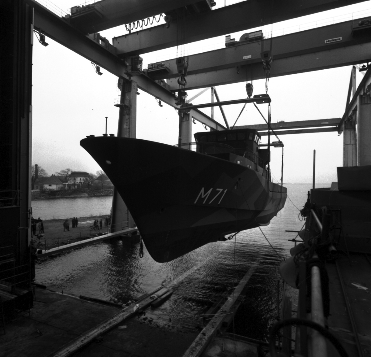 Sjösättning av M71 Landsort\\\\anm. neg ingår i en serie om 29 st varav endast V 94671 scannats. Neg nr V 94670 saknas/gp