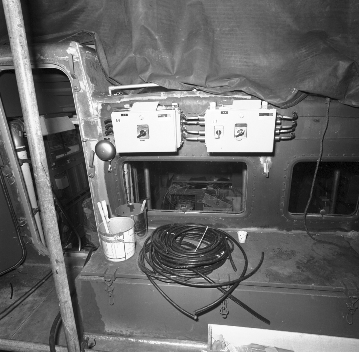 Interiör av maskincentralen och bryggan på kustkorvett typ Stockholm \\\\anm neg ingår i en serie om 24 st varav endast det första\\V 98754 scannats/gp