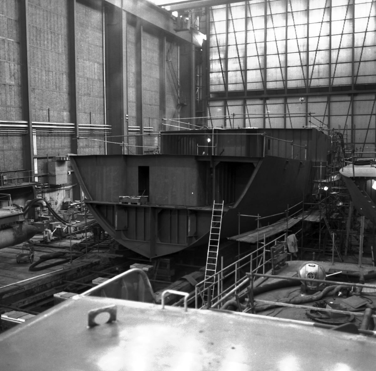 Titel: Spica III Spica III och bevakningsfartyget under byggnad i skrovhallen, samt vedettbåtar
