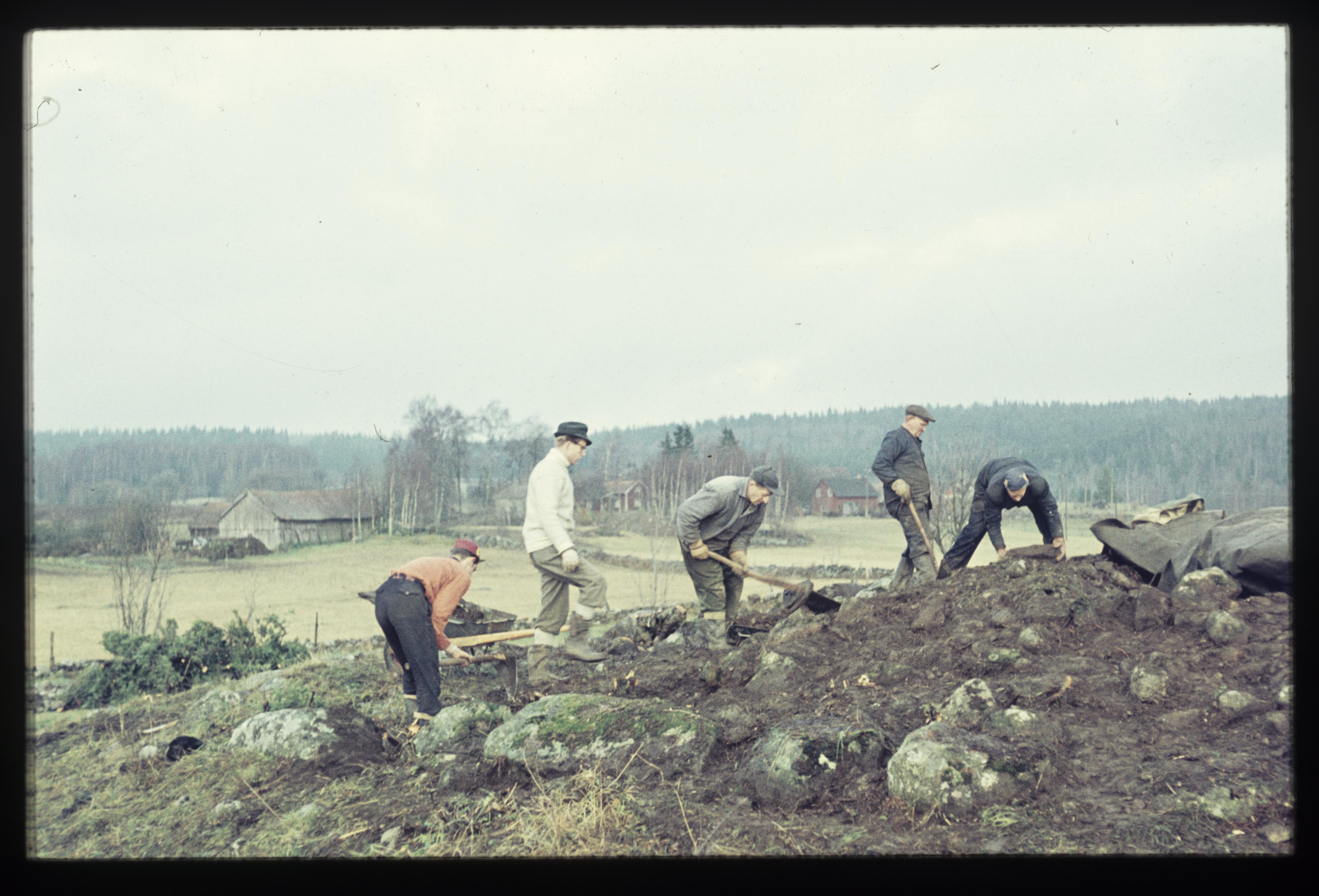 Grav 12. Arbetsbild. Från arkeologisk utgrävning 1958-1960 inför anläggandet av Ranstadsverken.