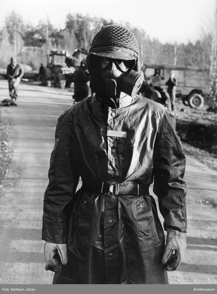 Gasmaskövning med en värnpliktig från Ing1 Svea Ingenjörregemente, Södertälje.