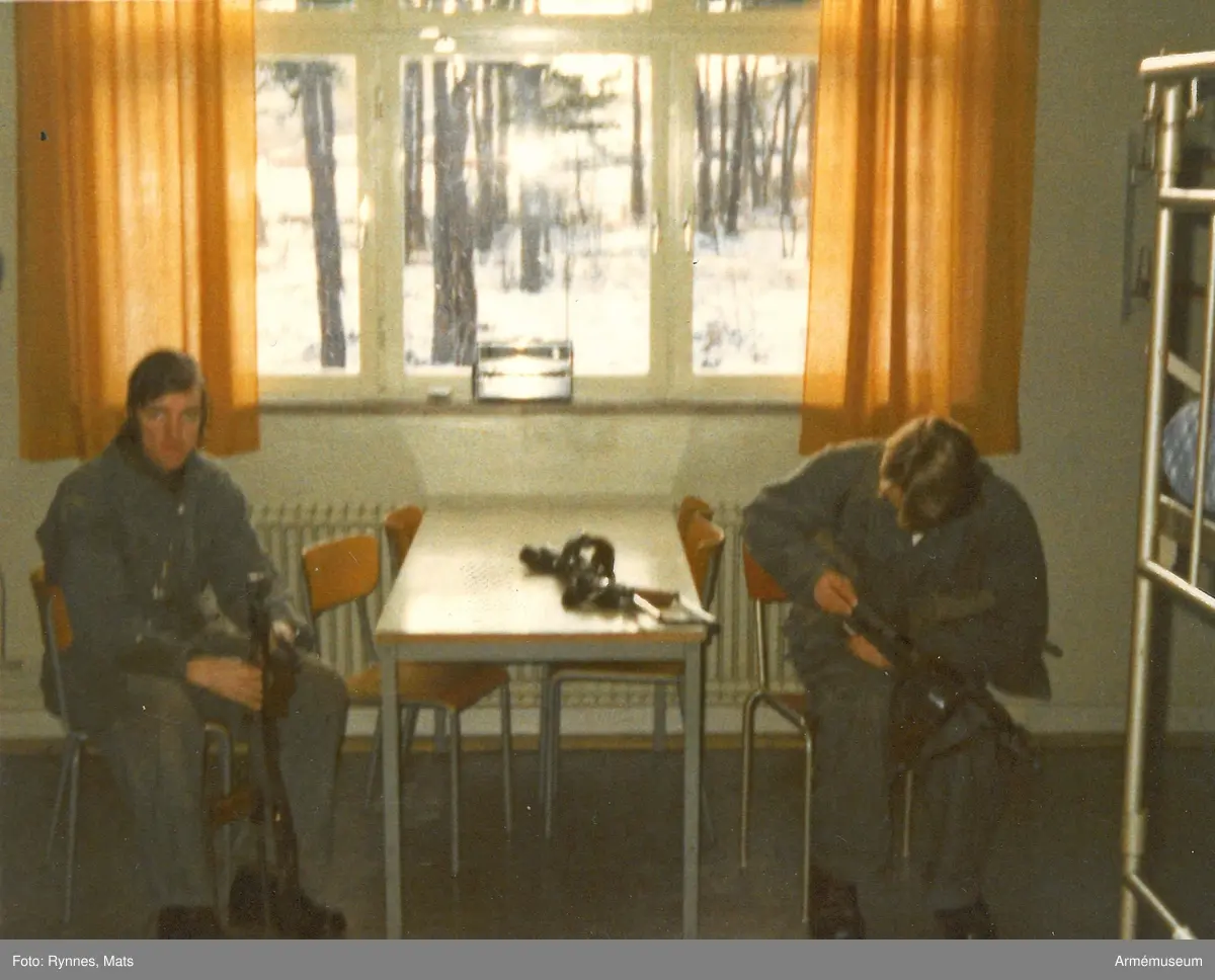 Värnpliktiga gör vapenvård på luckan, Gotlands kustartilleriregemente, KA3.