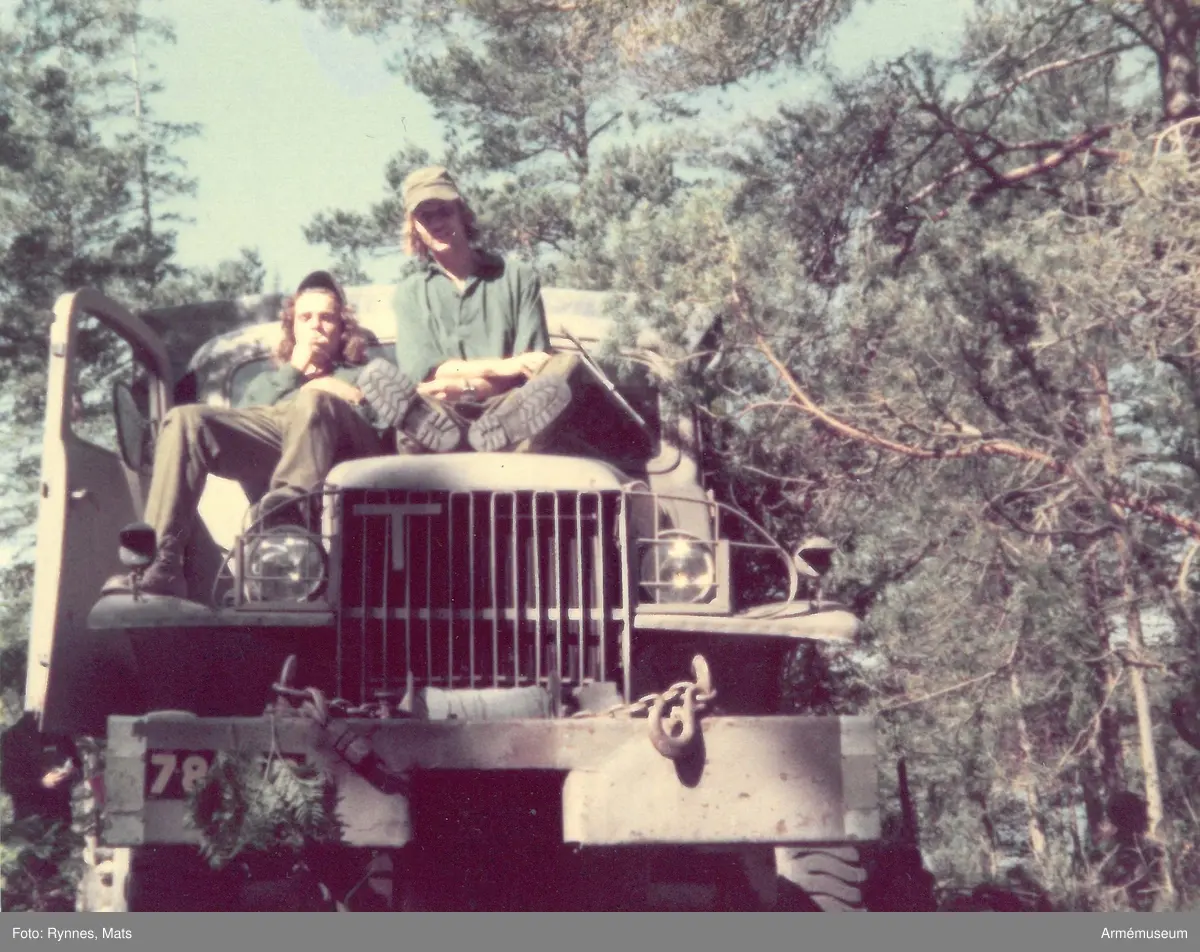 Militärfordon med värnpliktiga ute i skogen, Gotlands kustartilleriregemente KA3.