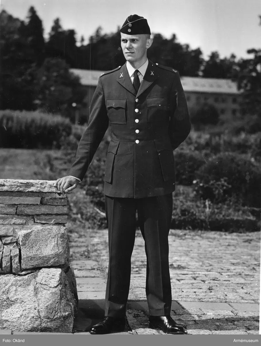 Soldat poserar i uniform m/1960 för Svea livgarde.