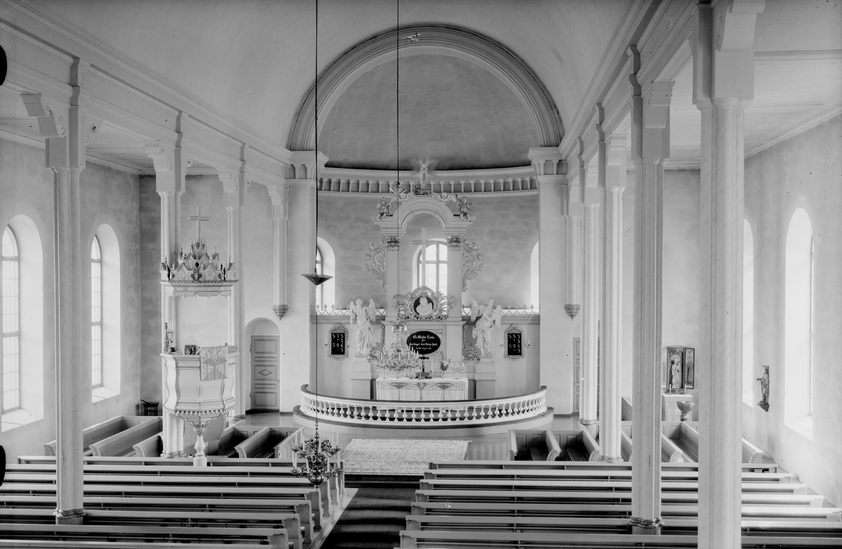 Interiör av Ore kyrka. Läs mer om Ore kyrka i boken: Dalarnas kyrkor i ord och bild.