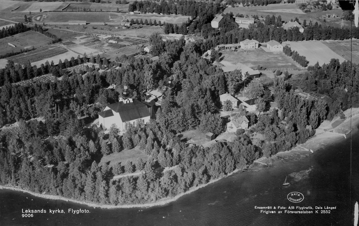 Flygfoto över Leksands kyrka.