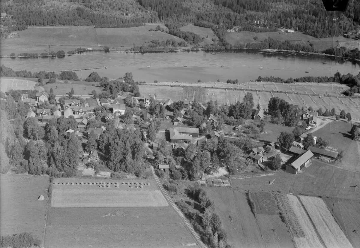 Flygfoto över Övermora, Kvarnsveden. Det finns ytterligare ett ortsnamn i samband med detta foto: Solbacken Tjärnan.