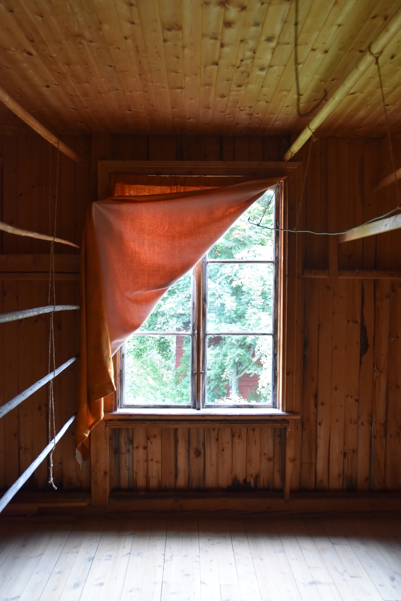 Titel: Interiör från Nygårdsgården i Bingsjö. Oinrett vindsrum använt för förvaring av främst textilier, i korsplanshuset på gården. Huset uppfördes 1912.