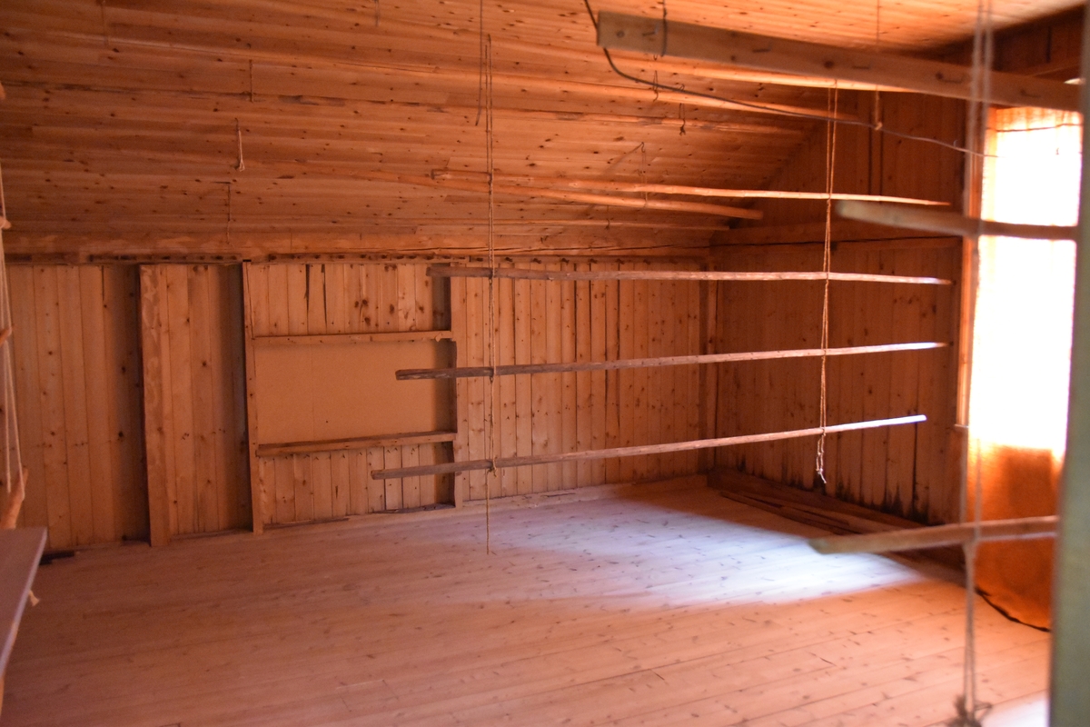 Titel: Interiör från Nygårdsgården i Bingsjö. Oinrett vindsrum använt för förvaring av främst textilier, i korsplanshuset på gården. Huset uppfördes 1912.