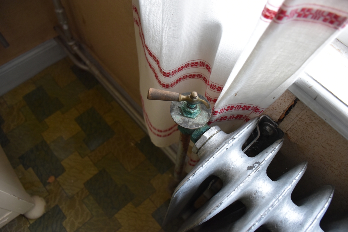 Titel: Interiör från Nygårdsgården i Bingsjö. Rum på övervåningen i korsplanshuset på gården. Huset uppfördes 1912.