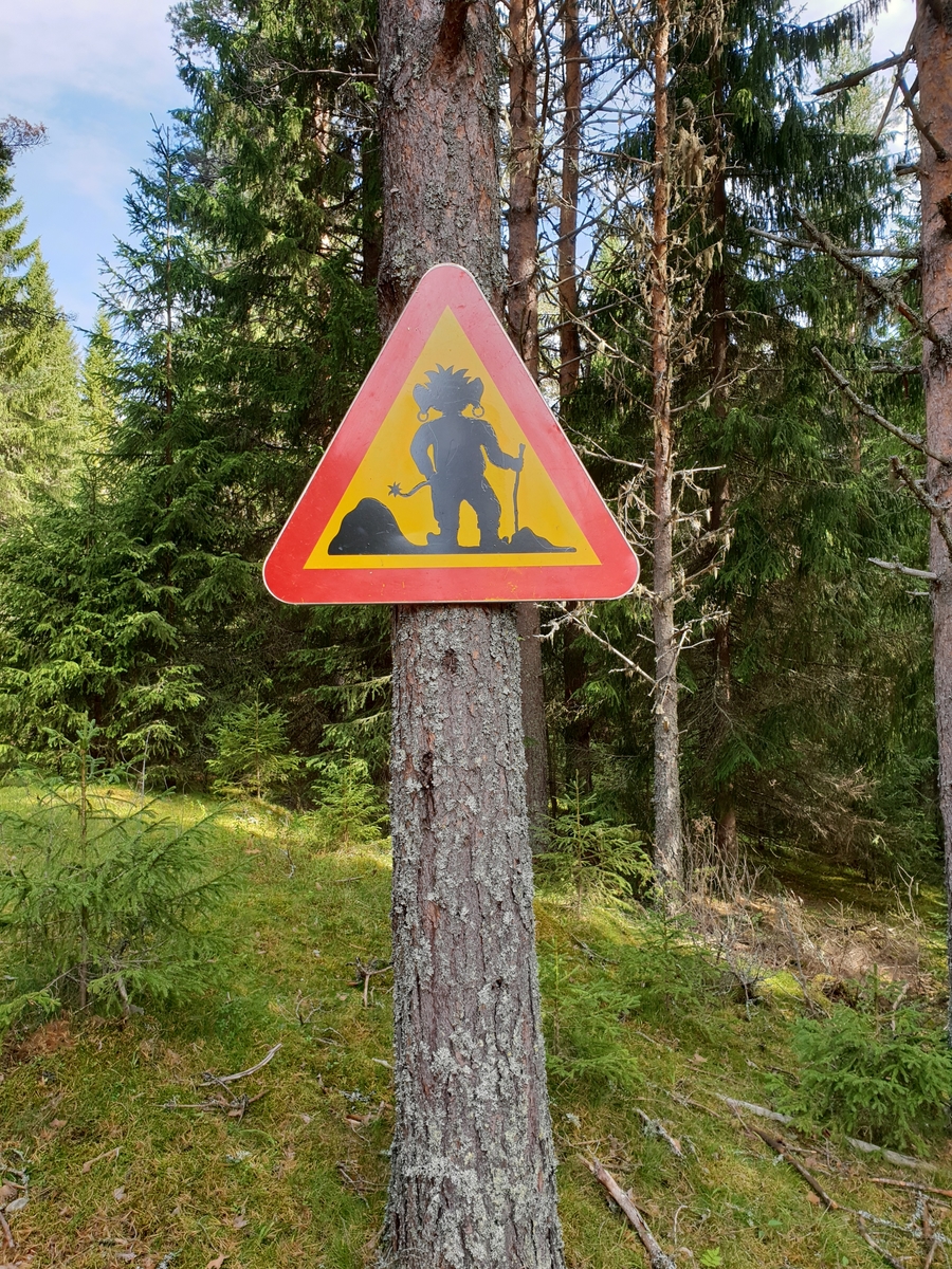 Varningsskylt för troll, Arvselens fäbod, Malung, 2018.