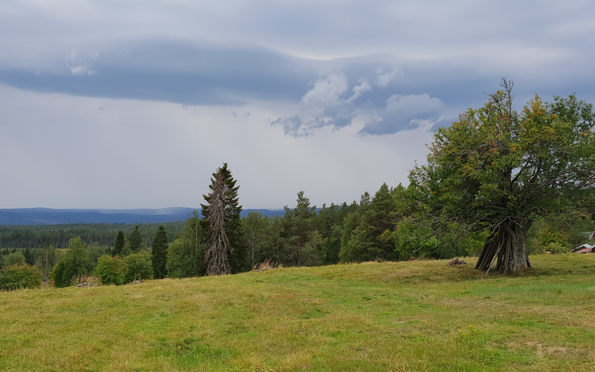 Vy från Brindbergs fäbodar, Älvdalen, 2018. Vid horisonten Sälenfjällen.