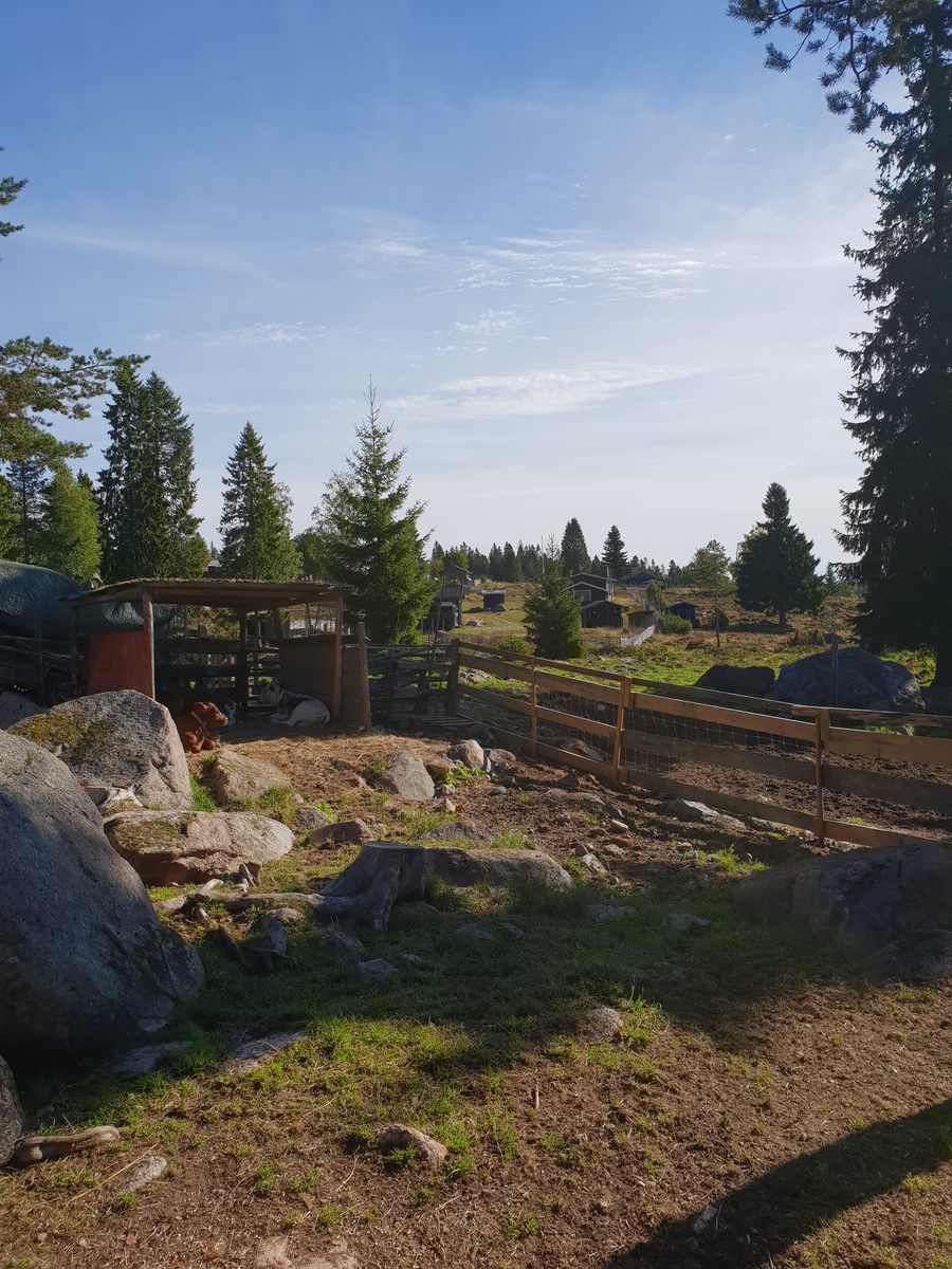 Hage, inhängnad, kalvar. Nysjöns fäbodar, Svärdsjö, 2018.