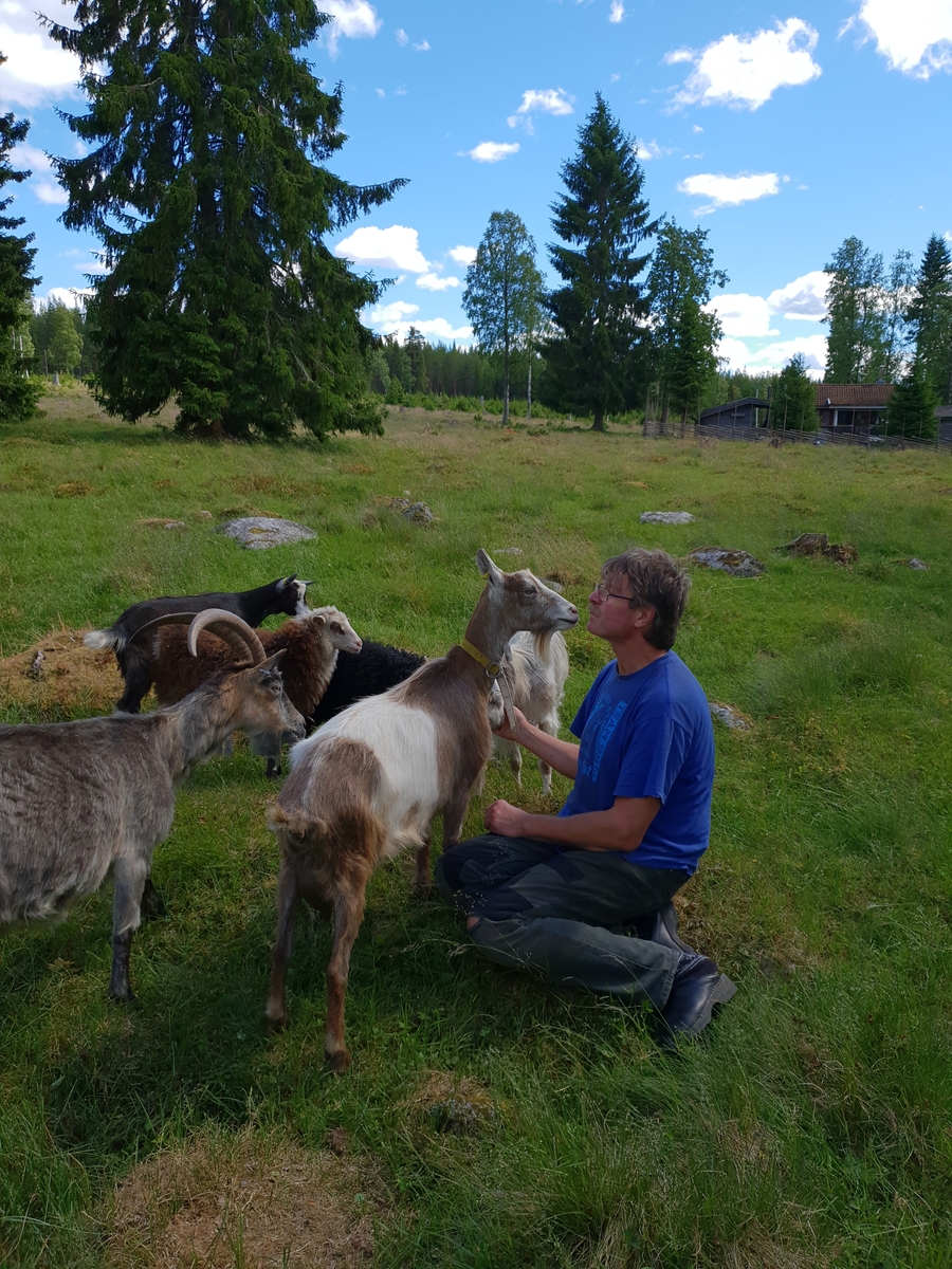 Goth Bertil Johansson med getter. Prästbodarna, Rättvik, 2018.