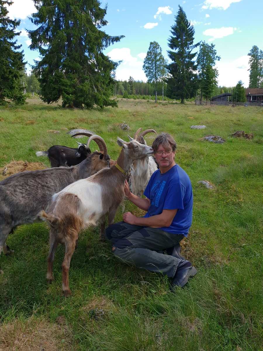 Goth Bertil Johansson med getter. Prästbodarna, Rättvik, 2018.
