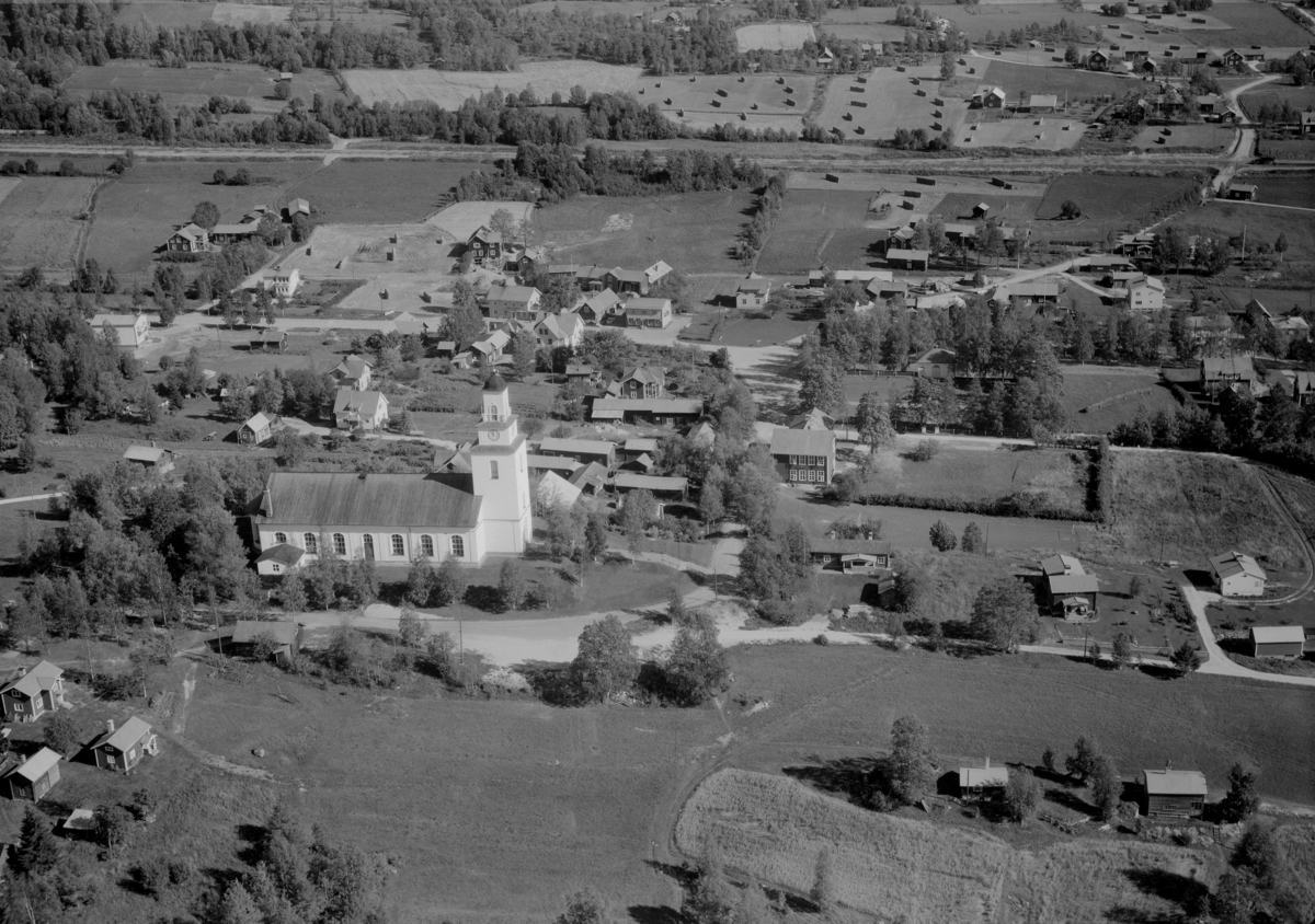 Flygfoto över Boda Kyrkby, Rättvik 1960.