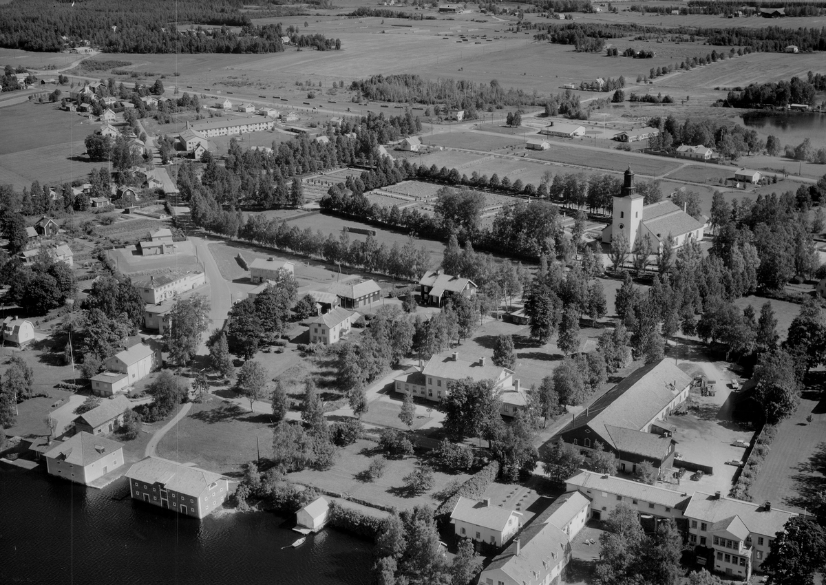 Flygfoto över Grangärde. Grangärde kyrka