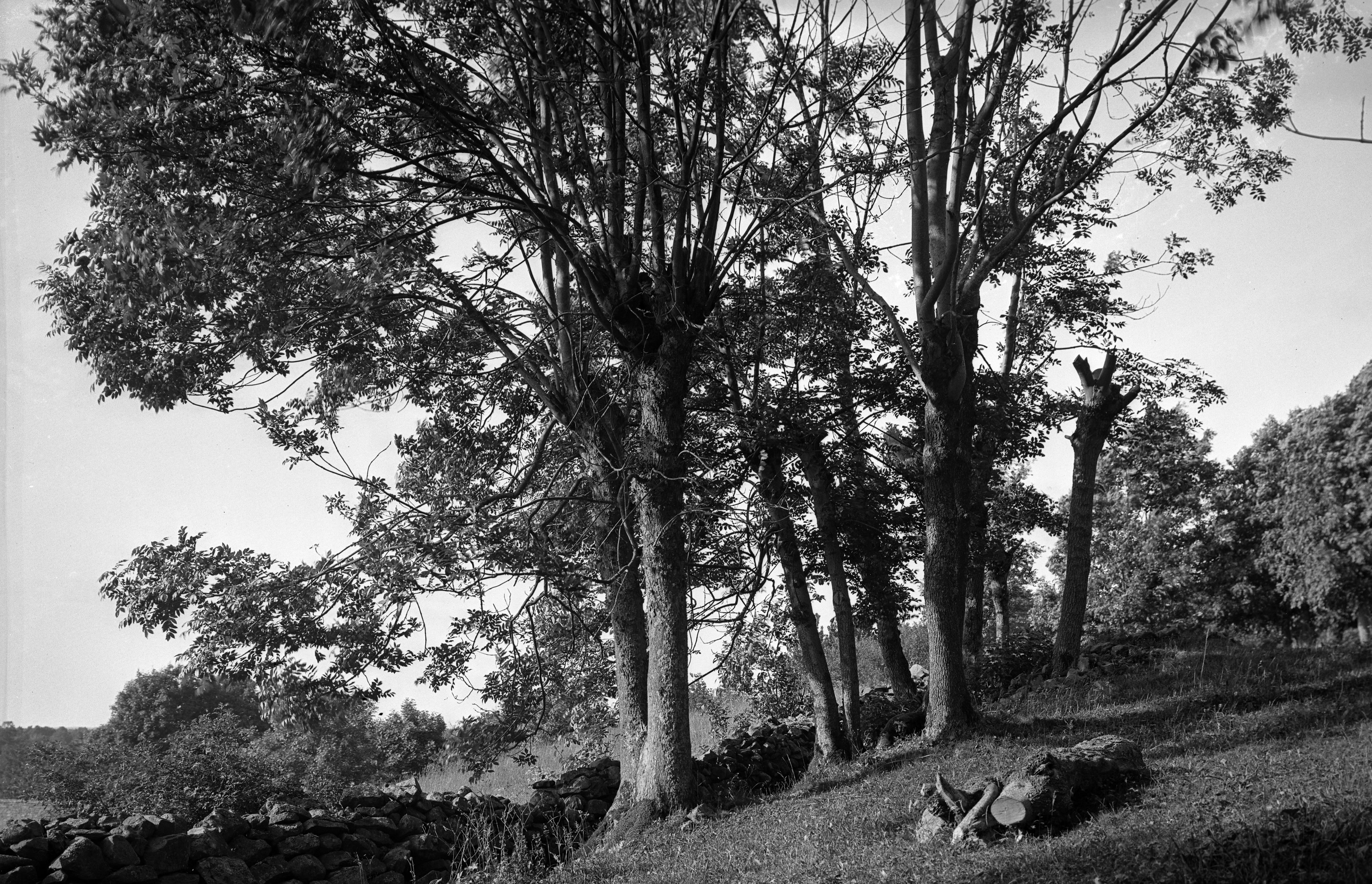 Mössebergs västra sluttning. Stympade lövträd resultatet av gammal lövtäkt.