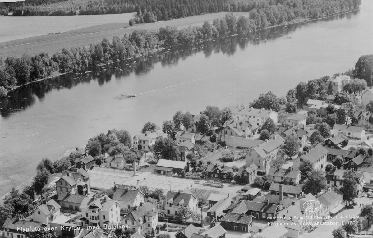 Flygfoto över Krylbo med Dalälven.