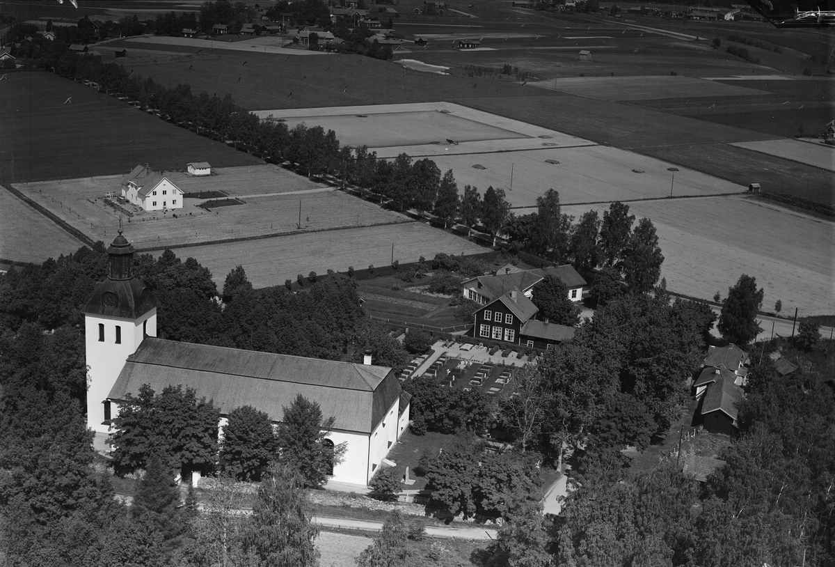 Flygfoto över Gagnef. Läs mer om Gagnefs kyrka i boken: Dalarnas kyrkor i ord och bild.