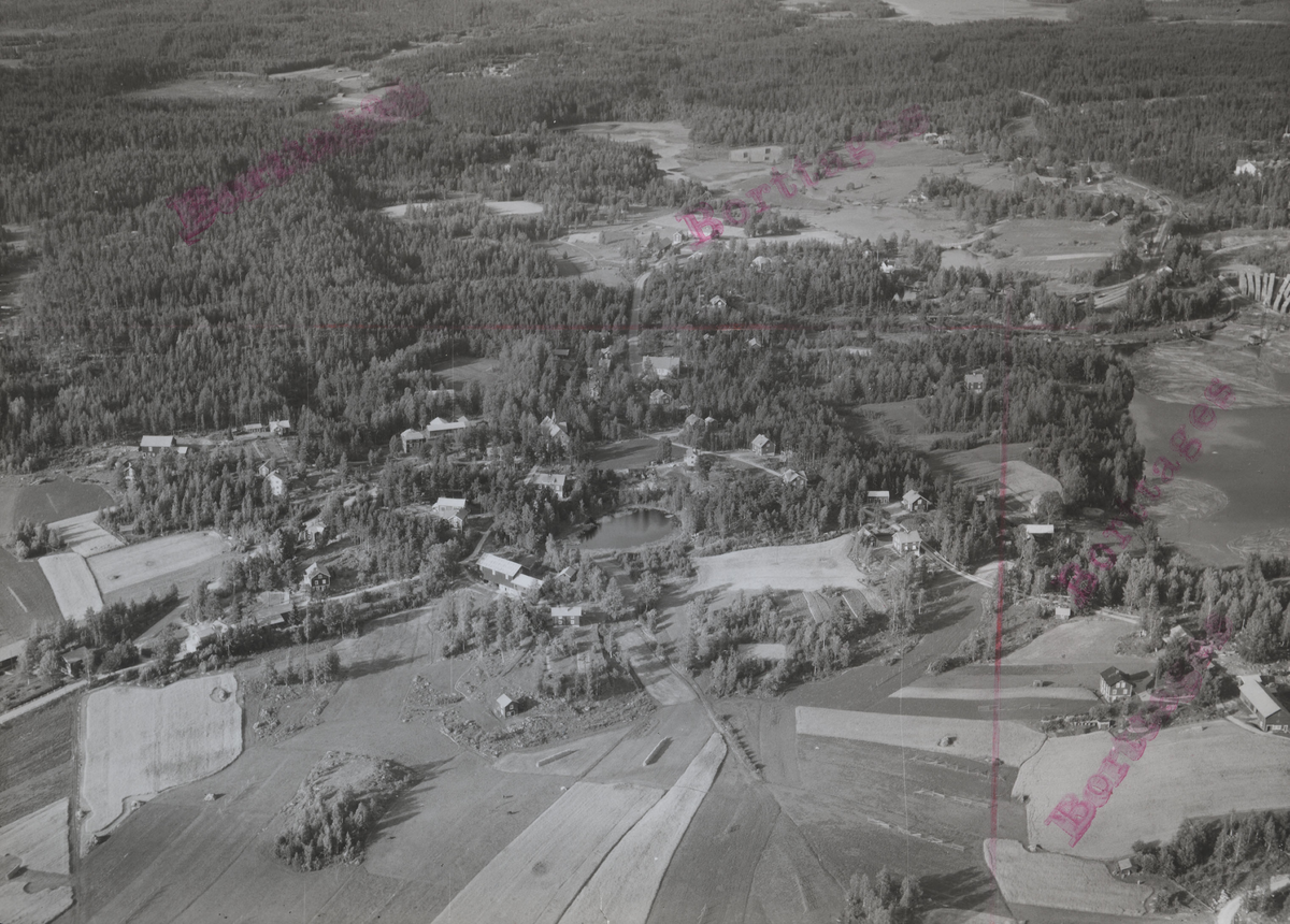 Titel: Flygfoto över Linghed, Falu kommun, år 1950.