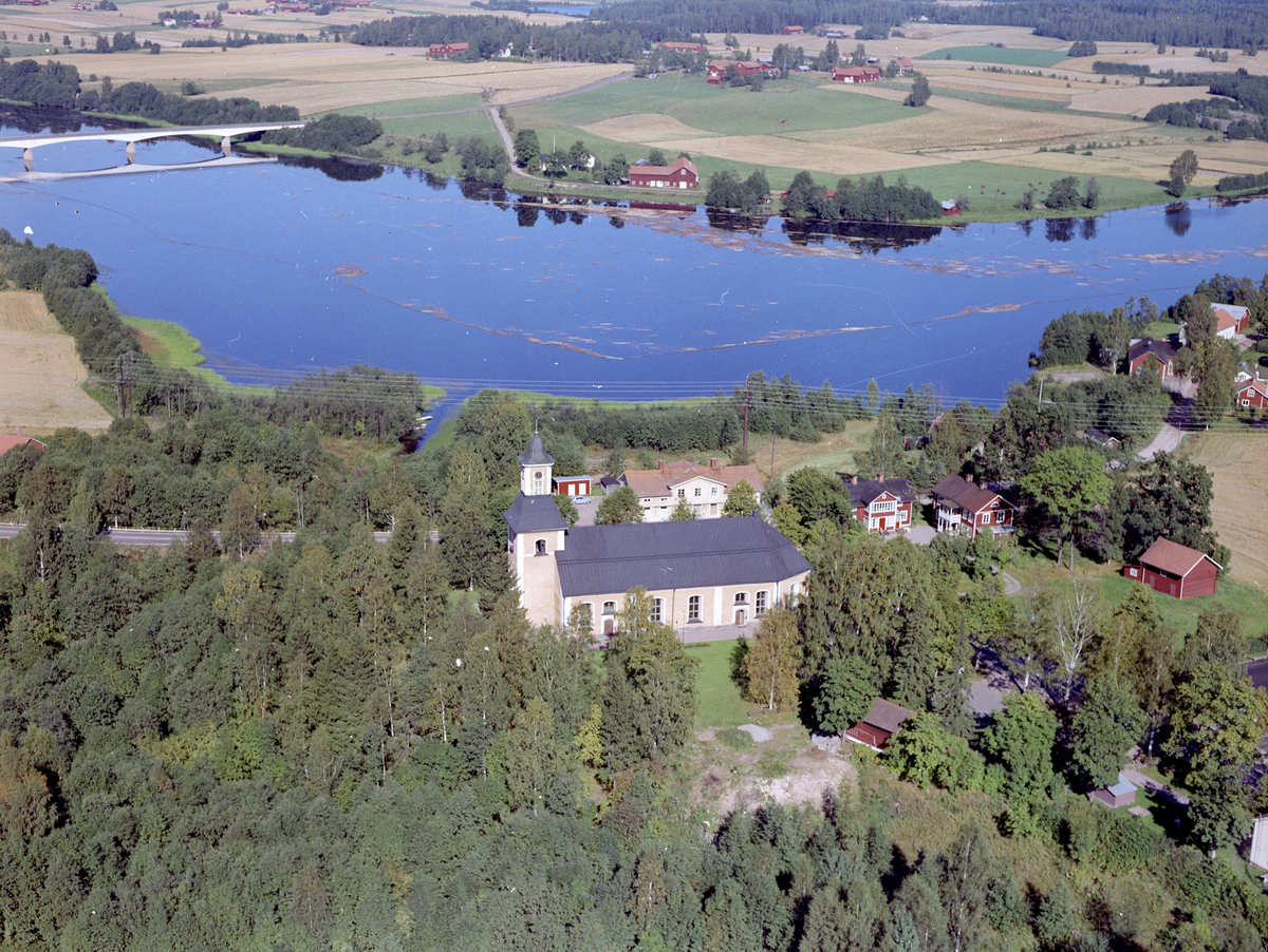 Flygfoto över Gustafs kyrka, Säter 1967.