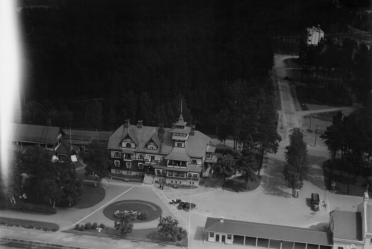 Flygfoto över Rättvik. Turisthotellet, Rättvik. Se litteratur: Rättvik 100 år som turistort artikeln Turisthotellet i Rättvik.