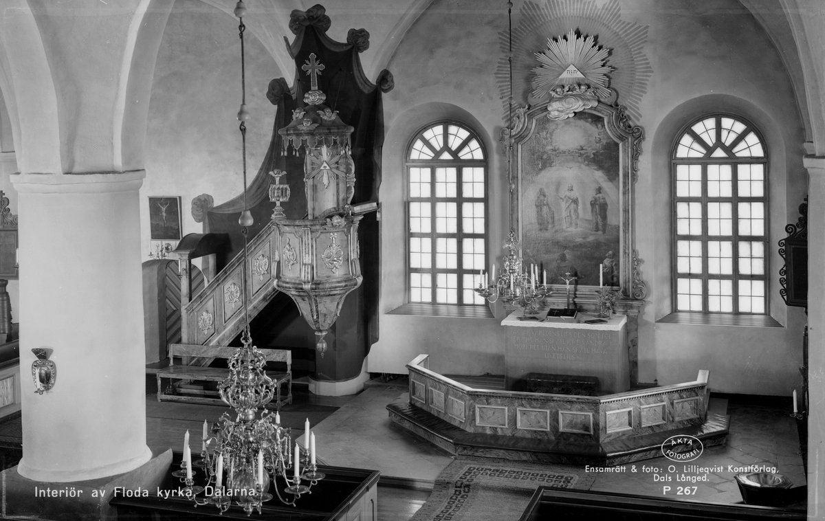 Interiör av Floda kyrka, Dalarna. Läs mer om Floda kyrka i boken: Dalarnas kyrkor i ord och bild.
