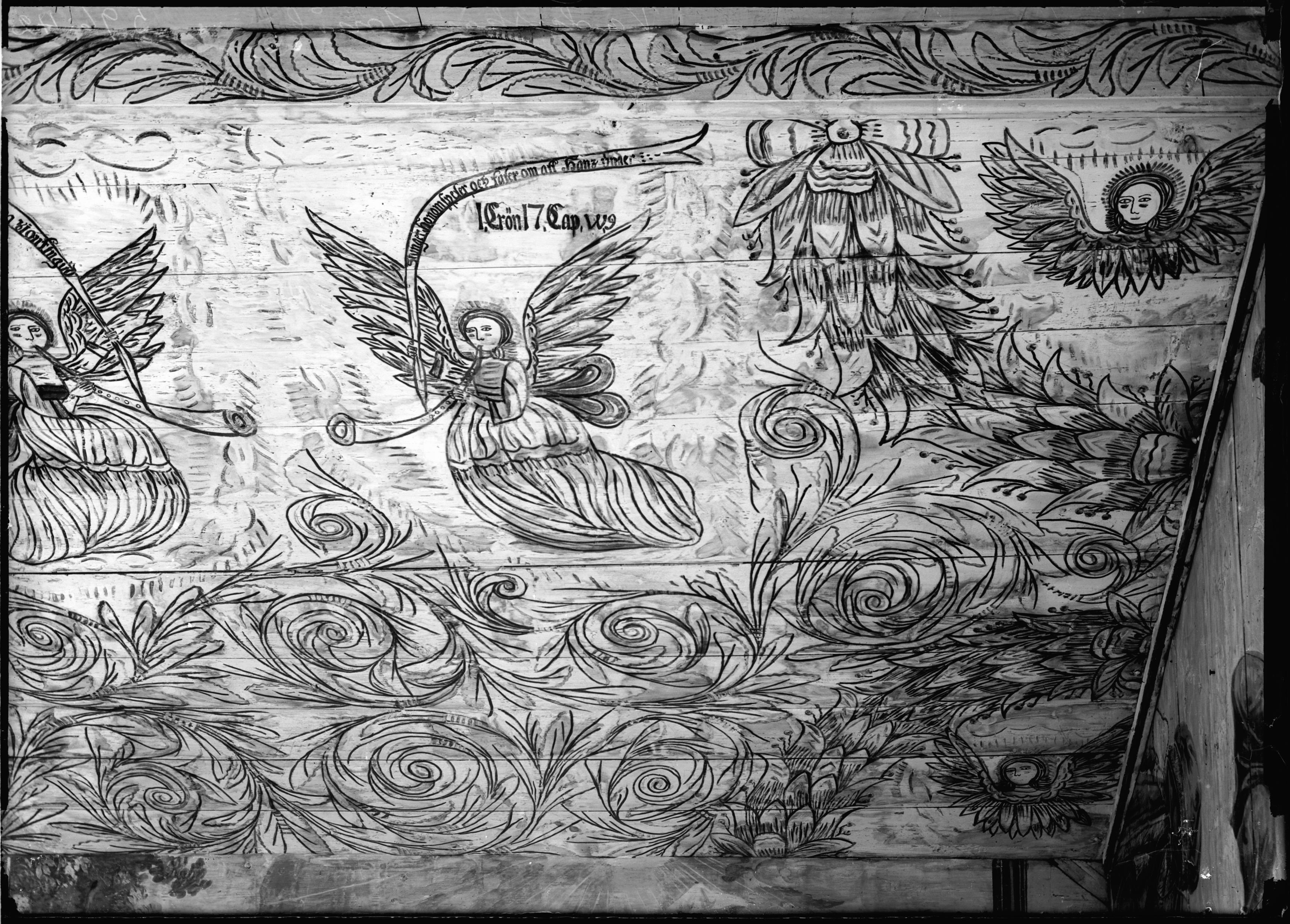 Beskrivning: Målningar i taket. Efter restaurering 1924.
