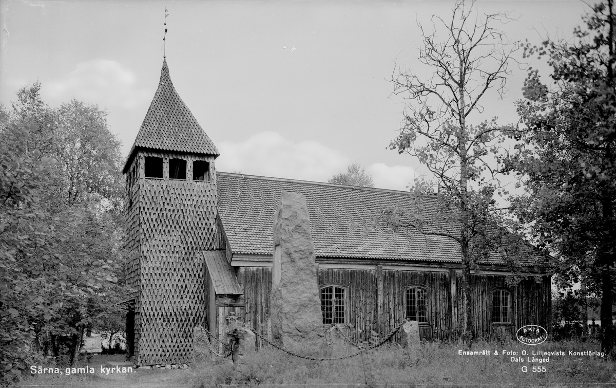 Gamla kyrkan, Särna 1948. Läs mer om Särna gamla kyrkan i boken: Dalarnas kyrkor i ord och bild.