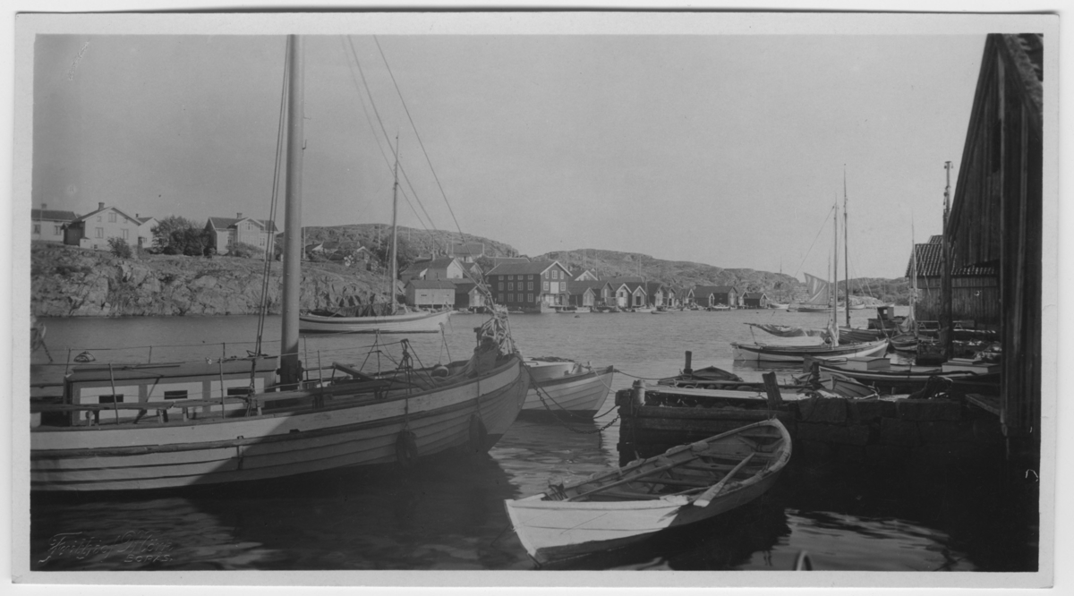 'Kilen åt S.V. I förgrunden båtar vid brygga. Hus. :: :: Serie fotonr 1888-1963.'