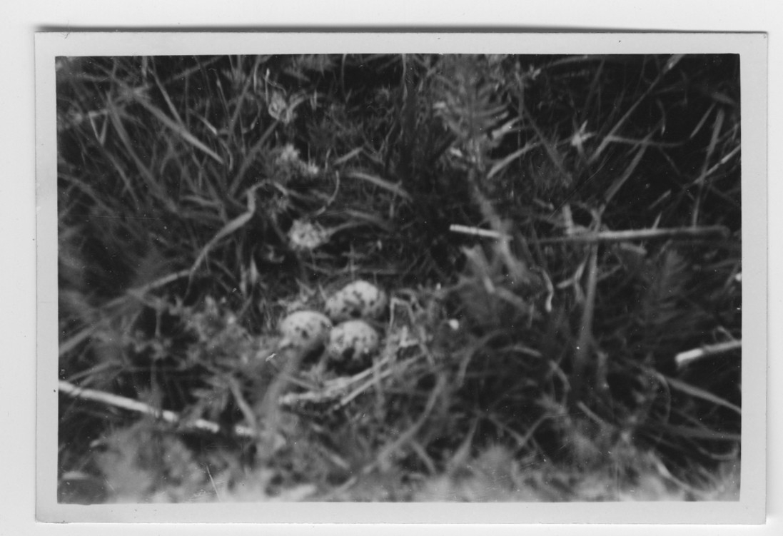 'Text enligt foto: ''Bo med 3 st ägg av fisktärnan på en holme väster om fågelstationen. Kolonin bestod av 6 bon. Fotot taget på 55 cm avstånd.'' :: :: Ingår i serie med fotonr. 4500:1-172.'