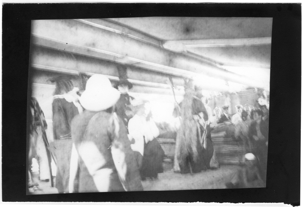 'Diverse fotografier från bl.a. dåvarande Nordrhodesia, nu Zambia, tagna av Konsul Magnus Leijer. :: :: Suddigt fotografi av ett flertal männiksor, eventuellt teaterföreställning.'