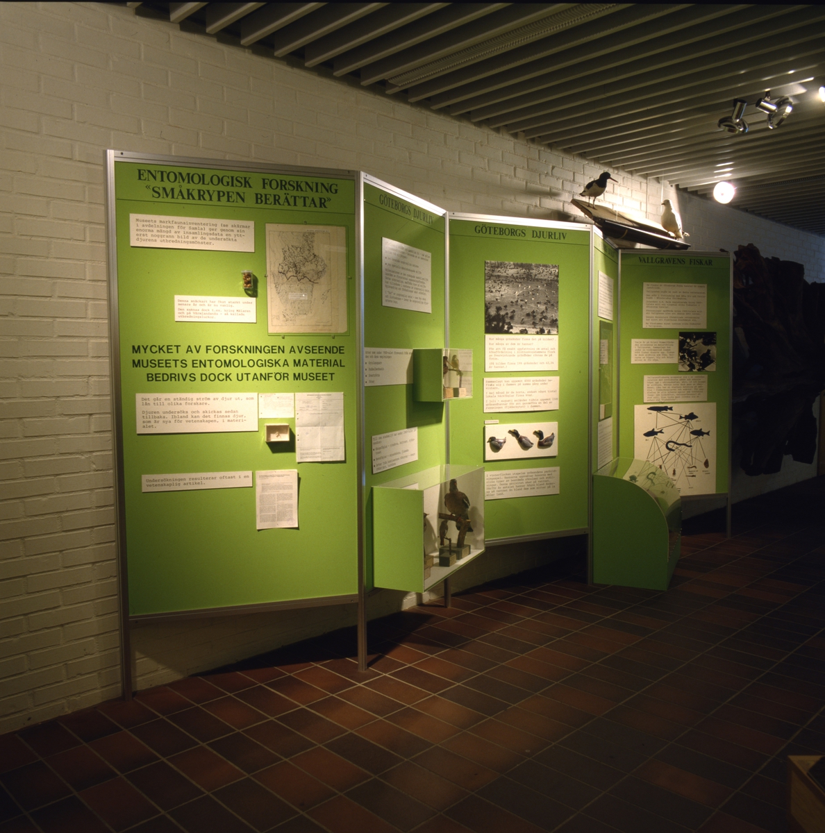 'Jubileumsutställningen: :: :: Del av utställningen med utställningsskärmar med rubrik ''Entomologisk forskning -småkrypen berättar'', Göteborgs djurliv m.m. :: :: Ingår i serie med fotonr. 5923:1-4.'