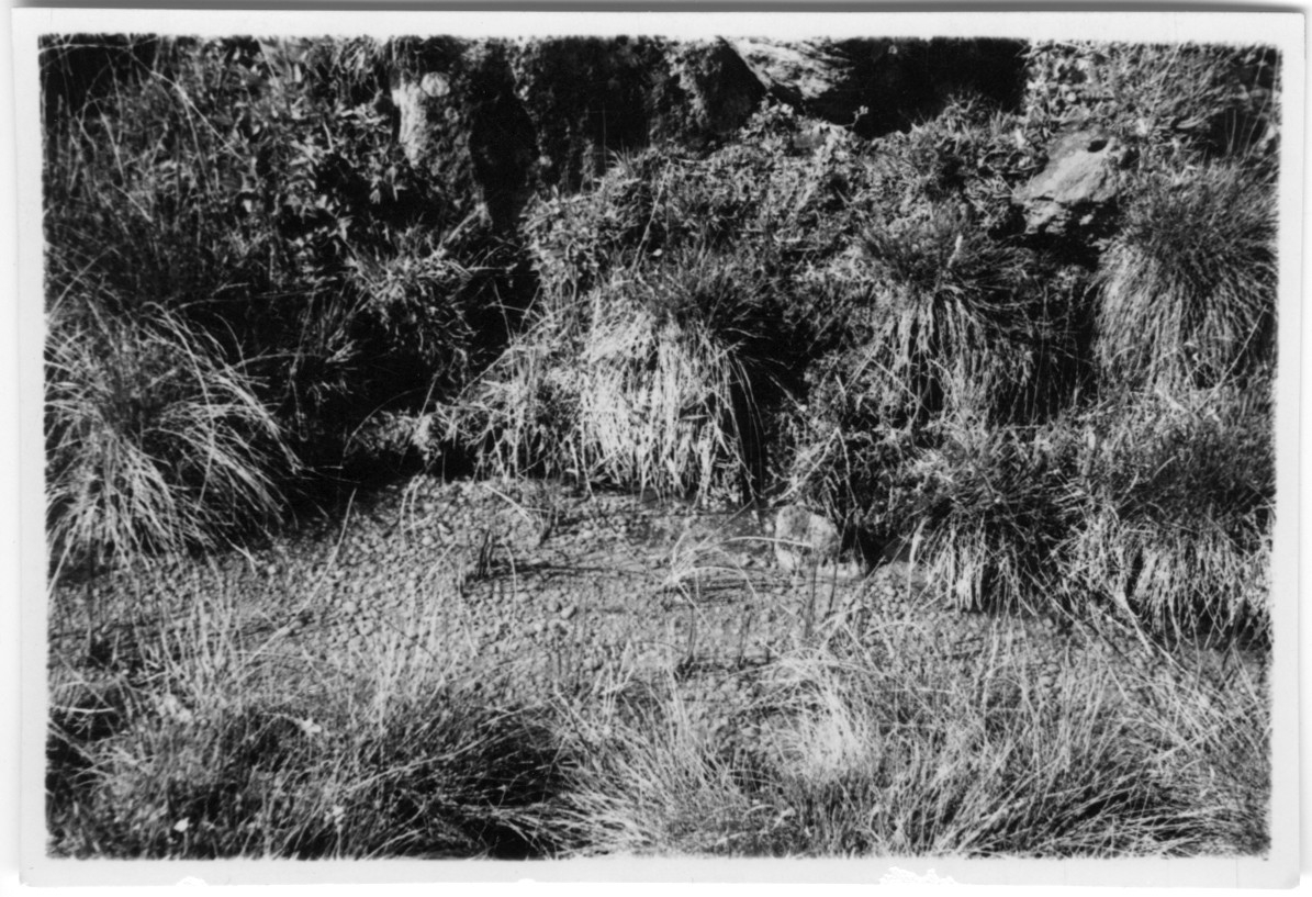 'Fyndplats av bollar, konkretioner. Närbild med bollar och grästuvor. :: :: Låda 469 i geologisamlingen. :: :: Ingår i serie med fotonr. 6046:1-11.'
