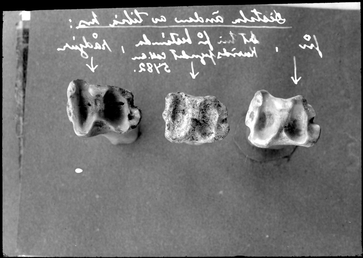 'Distala ändan av tibia av: :: Längst till vänster av rådjur och de 2 till höger av tamfår (Coll.an. 5482).'