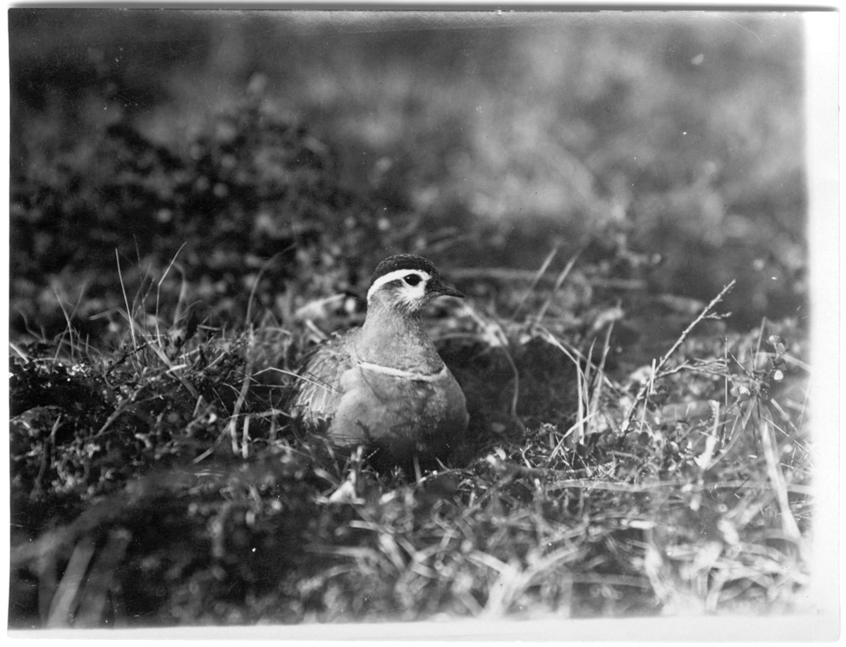 'Fjällpipare på marken, närbild, sedd framifrå. :: :: Ingår i serie med fotonr. 1690-1708.'