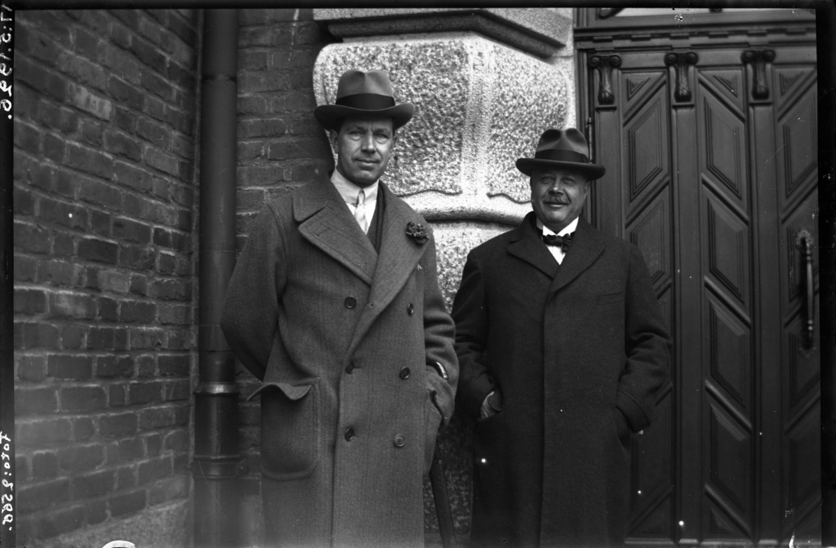 Kronprins Gustav Adolf och ltill höger landshövding Oscar von Sydow. Utanför stora ingången till Göteborgs Naturhistoriska museum.