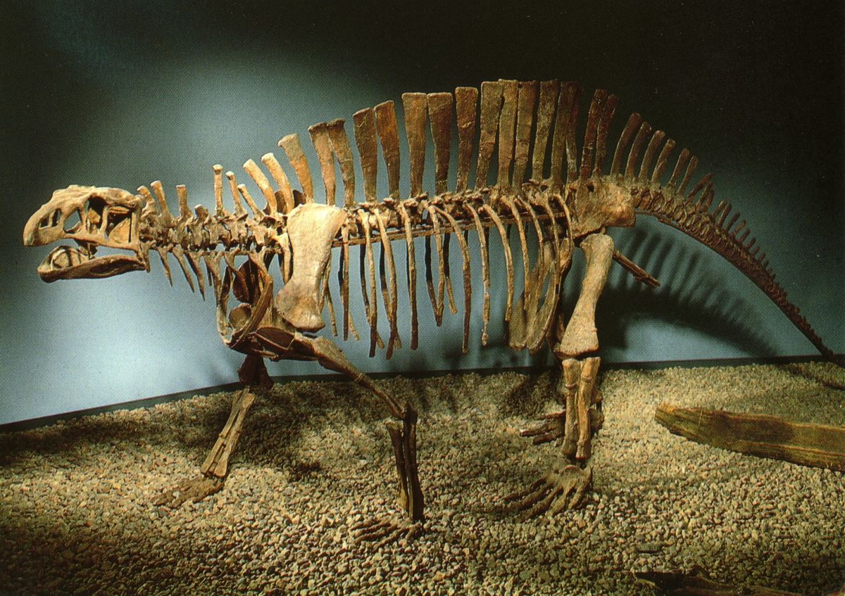 'Ingår i en serie med Fotonr. 5419 med Göteborgs Naturhistoriska museums olika vykort genom åren. :: :: Skelett från en Thecodont (dinosaurie).'