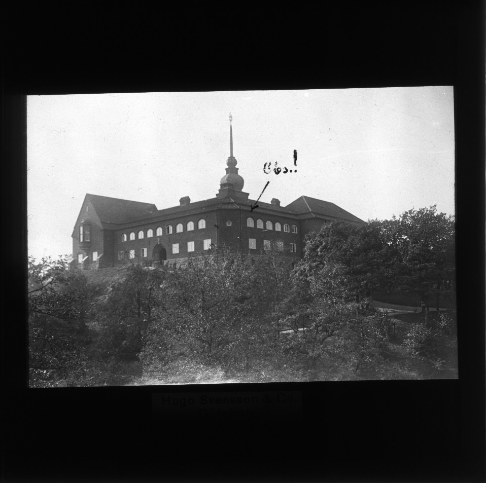 'Byggnader. :: ''Svenska museer'' :: Diaduplikat av bilder i fotoarkivet. :: :: Vy över Göteborgs Naturhistoriska Museum i slottssgkogen. :: :: Någon har noterat ''Obs!'' på glaset.'