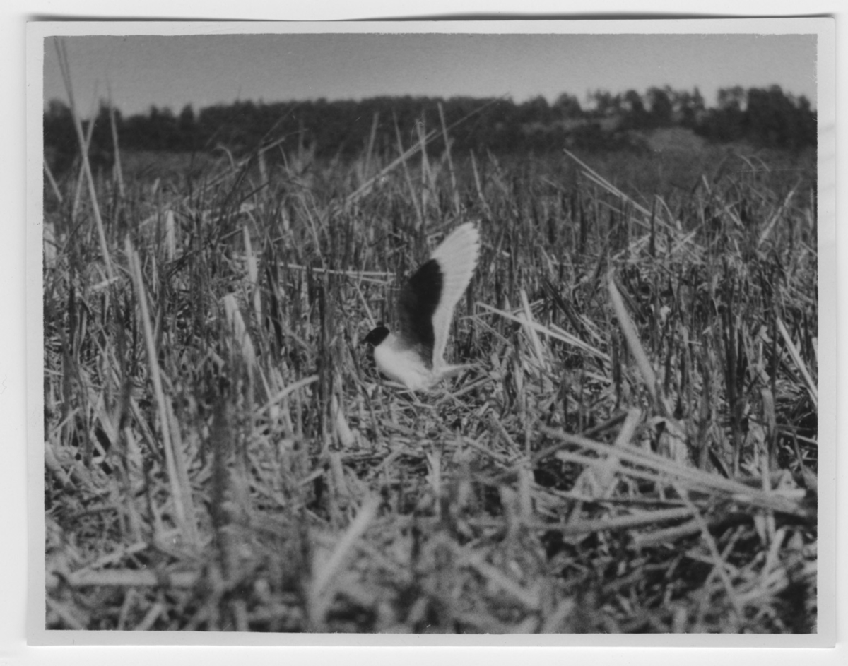 'Dvärgmås landar på boet i vass. :: Text på baksidan:'' Dvärgmåsen slår till på boet. 3 par dvärgmåsar uppehåller sig i sjön men blott 2 par tycktes häcka.'' :: :: Ingår i serie med fotonr. 2305-2346.'