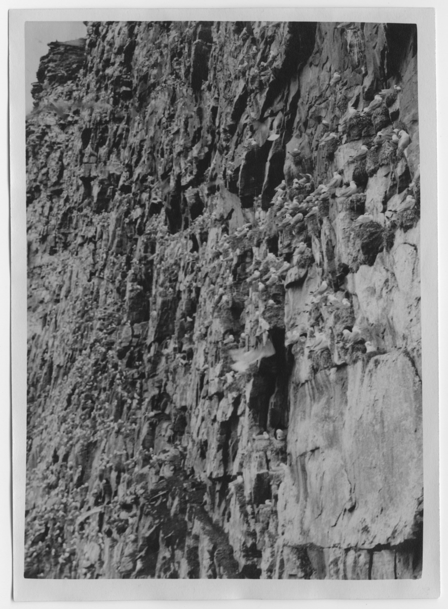 'Tretåiga måsar, hel klippvägg full. Koloni. :: :: Ingår i serie med fotonr. 2462-2487.'