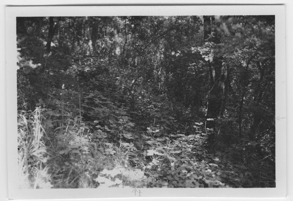 'Näktergal, terrängbild med snår, sly och träd där bogrupp till Göteborgs Naturhistoriska museum samlades in 1935. :: :: Se även fotonr 3547.'