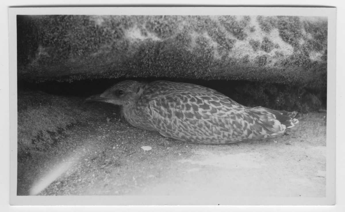 '1 st gråtrutunger gömmer sig mellan stenblock. :: :: Text på baksidan av fotot: ''1 st fullvuxen gråtrutunge trycker under sten.'' :: :: Ingår i serie med fotonr. 4500:1-172.'